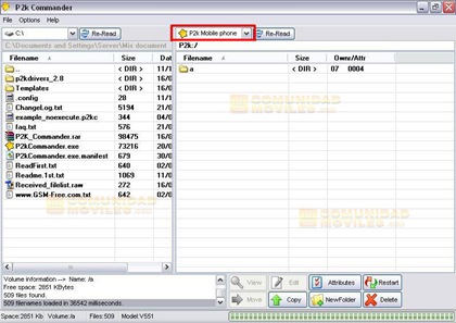 1)En el programa vamos a ver la pantalla dividida en 2 mitades iguales. En ambas mitades, en la parte superior, hay una solapa. En la solapa de la mitad de la derecha debemos elegir la opcion P2K MOBILE PHONE.